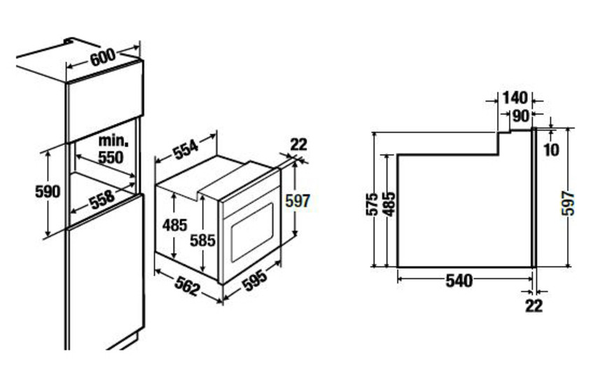 | Размеры ниши для встраивания Ш x В x Г | 560 x 590 x 550 мм |