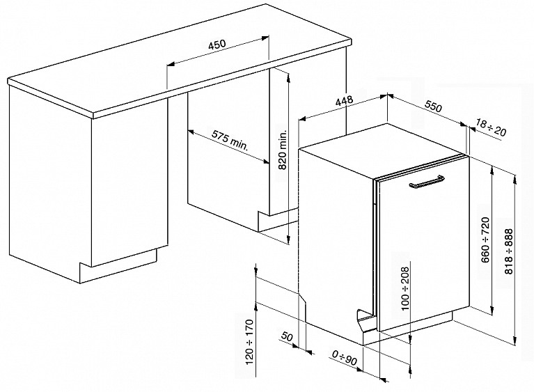 | Габариты ниши для встраивания (ВхШхГ) | 820х450х575 мм |
