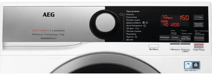 | Функции кнопок | вкл/выкл, +мягкость, задержка запуска, старт/пауза, выбор температуры стирки, изменение скорости отжима, пятна/предв. стирка, полоскание, сокращение времени, эко |