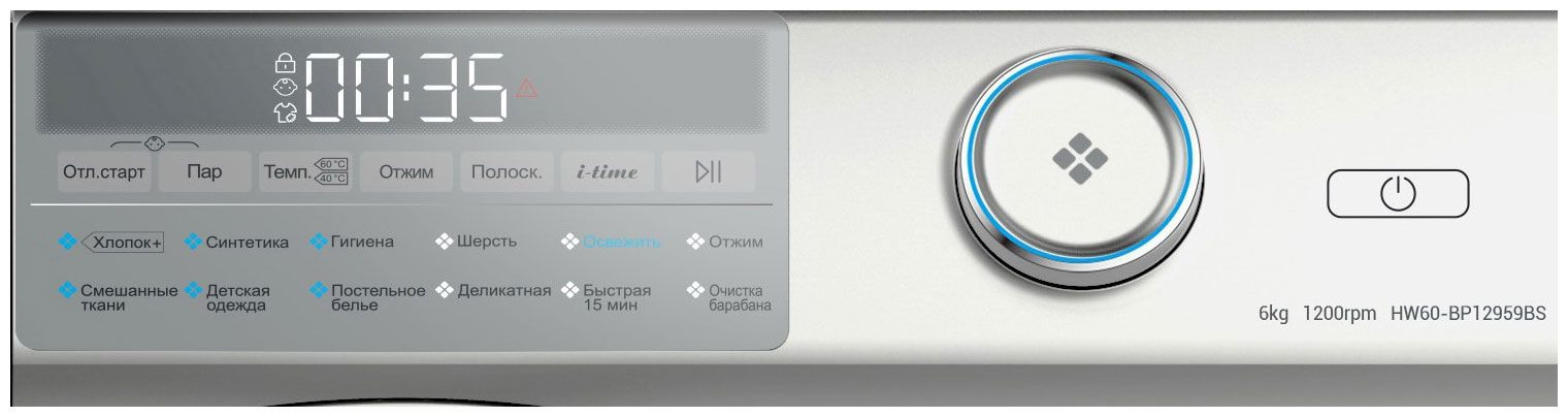 | Программы | хлопок, синтетика, смешанные ткани, детские вещи, шерсть, экспресс 15 мин, гигиена, постельное белье, деликатная, очистка барабана, отжим, освежить |