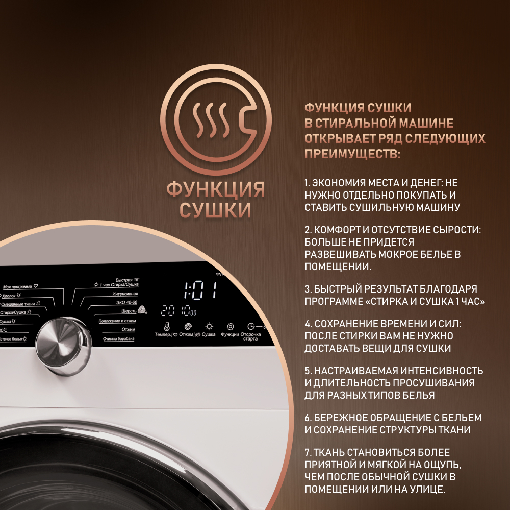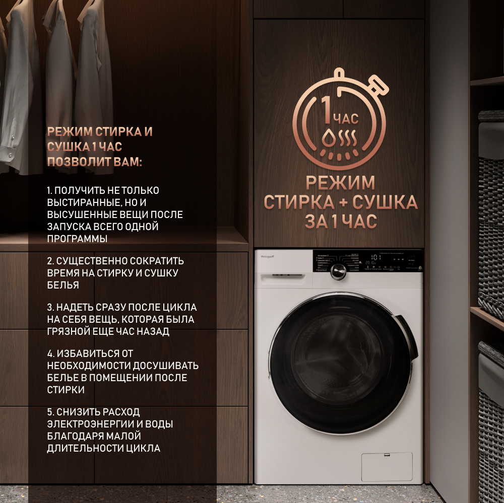 | Режим "Стирка + Сушка за 1 час" | есть |
