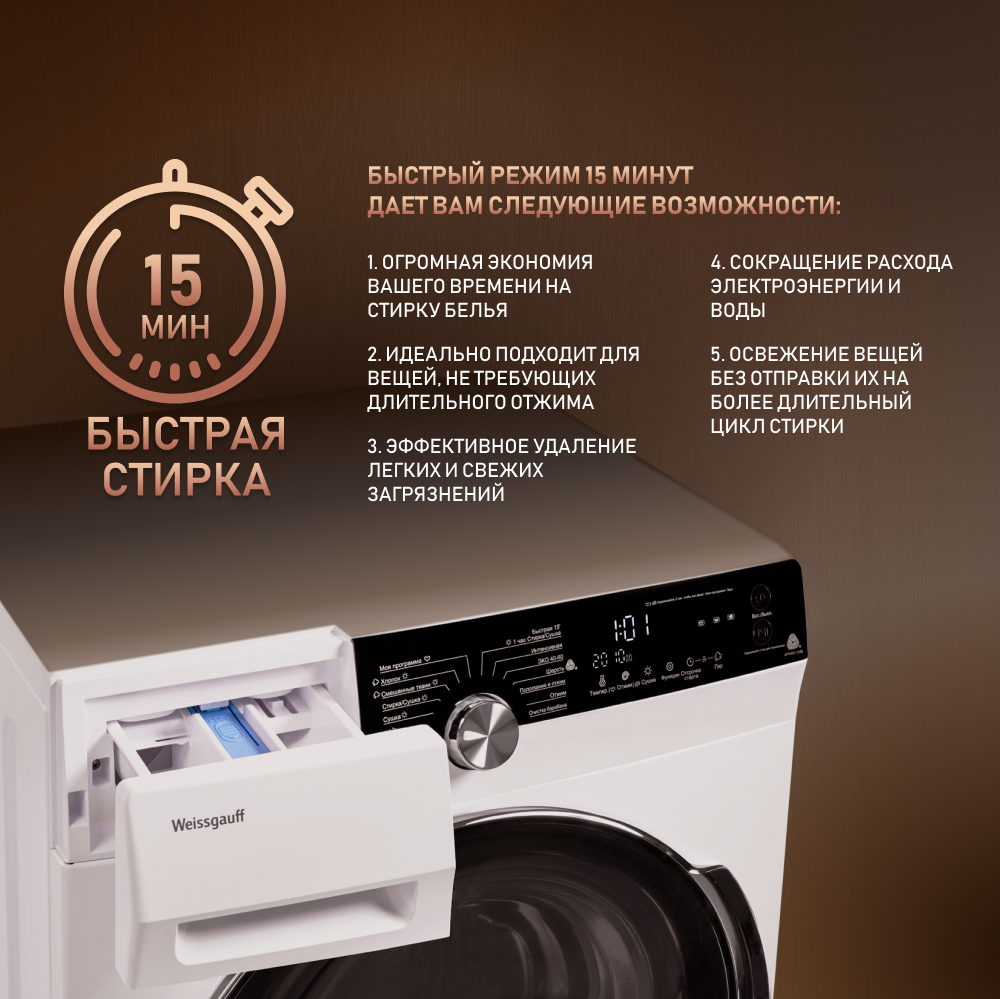 | Режим "Быстрая стирка" 15 минут | есть |