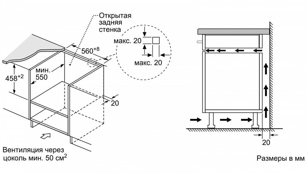 | Габариты ниши для встраивания (ВхШхГ) | 45-45.2х56-56.8х55 см |
