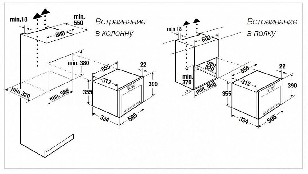 | Размеры ниши встраивания в полку (Ш x В x Г) | 56.8 x 37 x 32 см |
