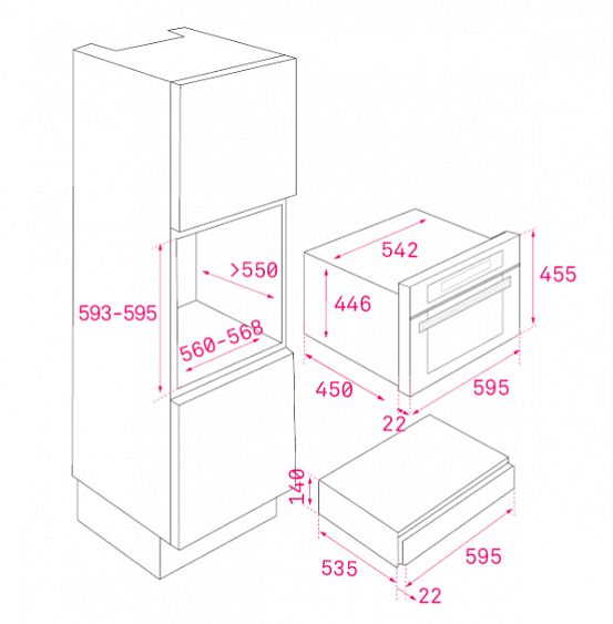 | Внешние размеры (В×Ш×Г) | 140 х 595 х 557 мм |