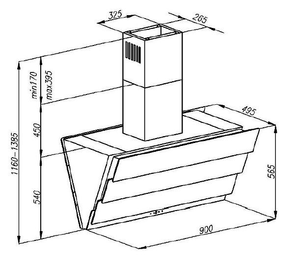 | Размеры вытяжки (ВхШхГ) | 116-138.5х90х49.5 см |